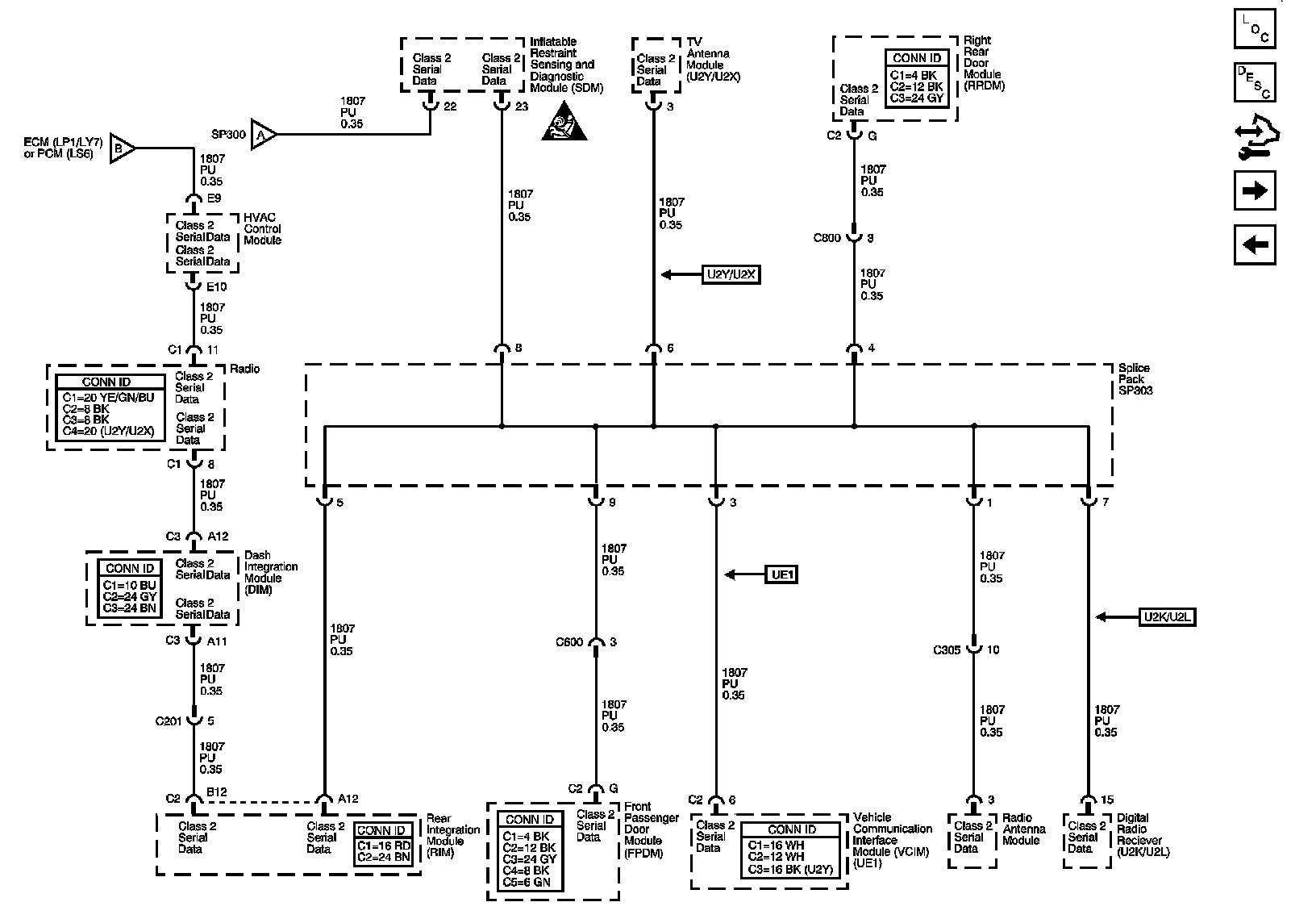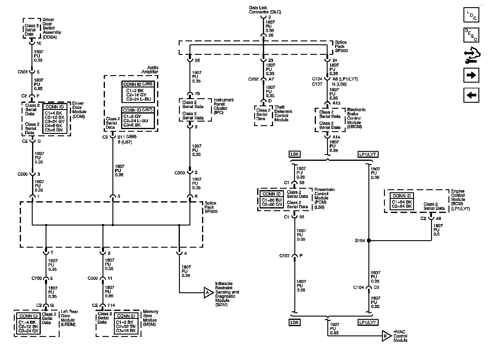 Locations: The locations for the Connectors, Grounds, Splices, and Grommets shown within these diagrams can be found via their numbers at Vehicle Locations. Locations