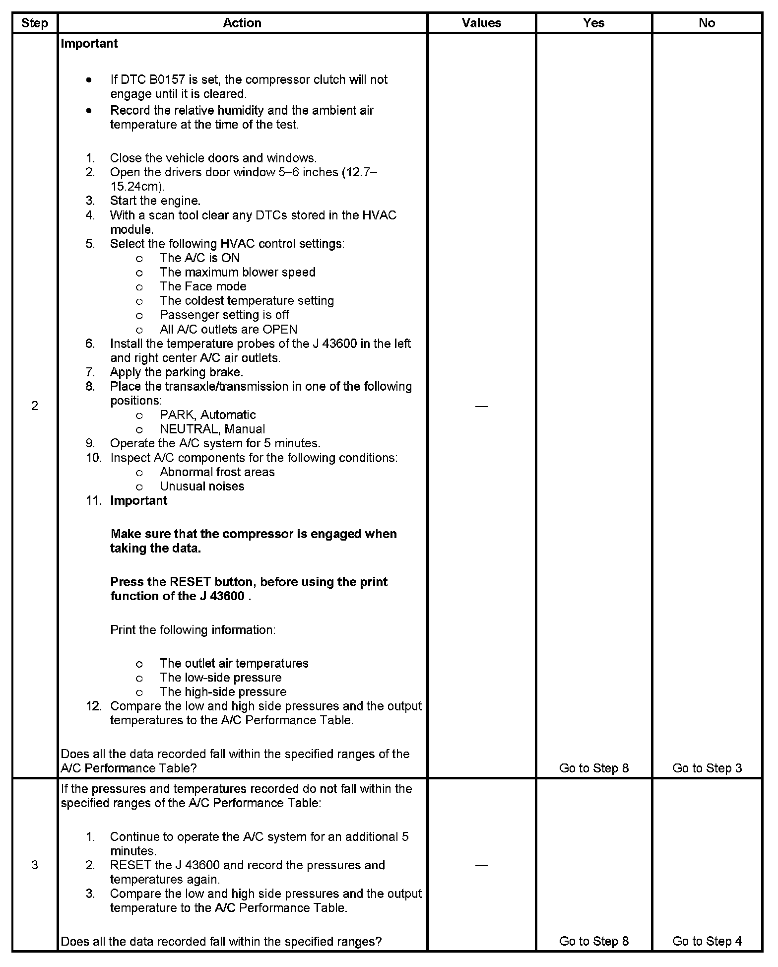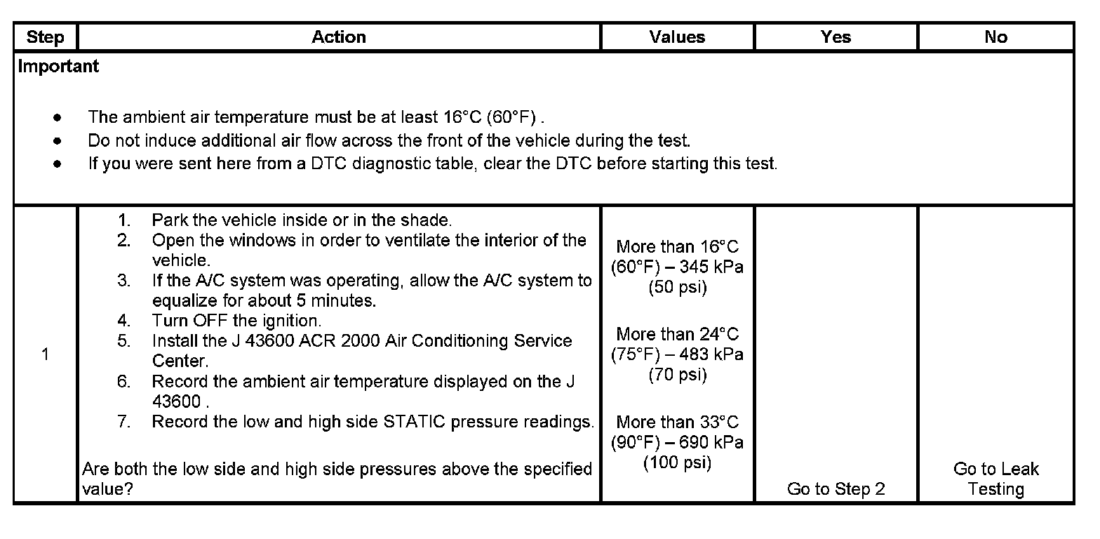 1. This step determines if the A/C system has at least the minimum refrigerant charge required to operate the system without damage.