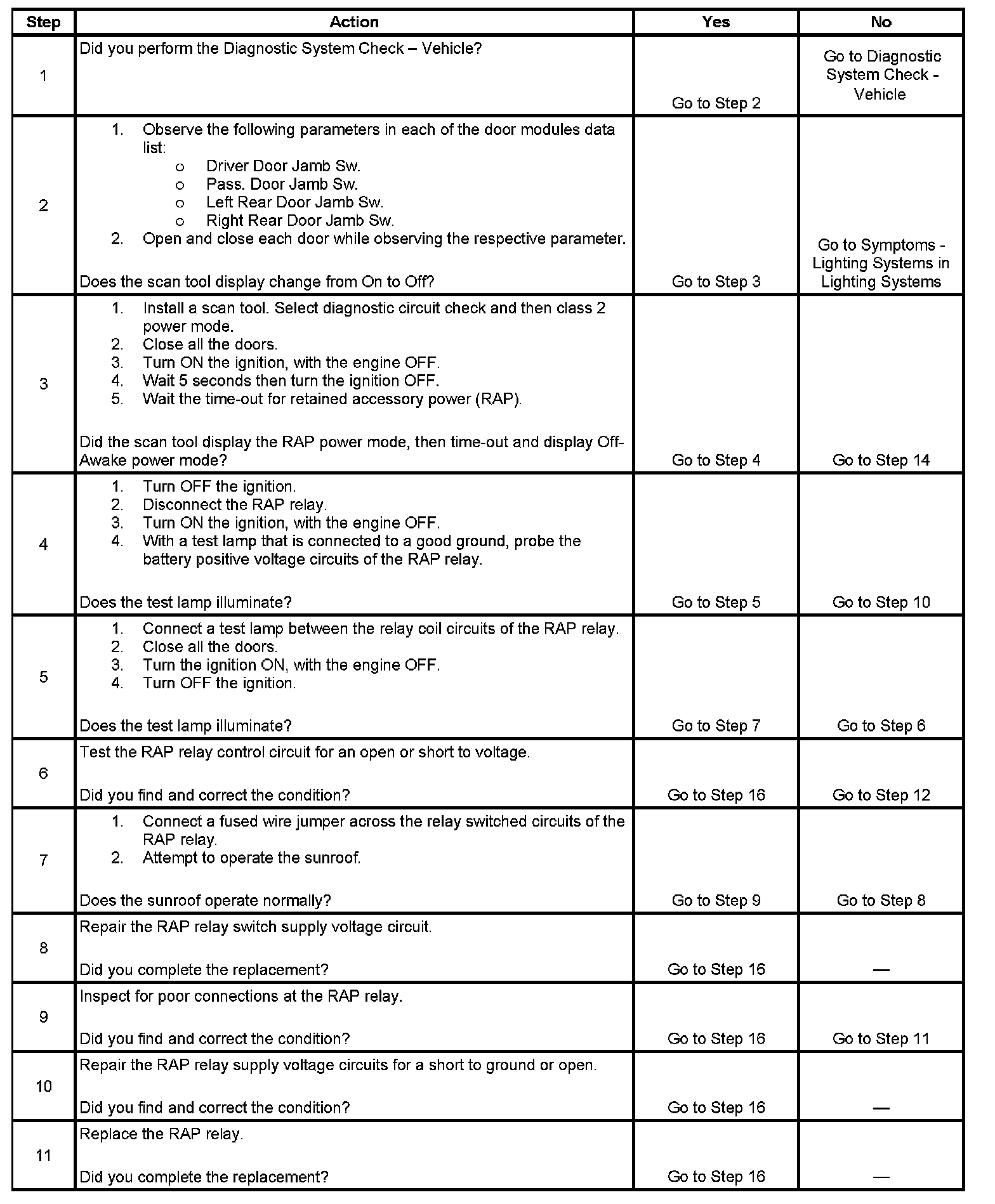 Retained Accessory Power (RAP) Inoperative