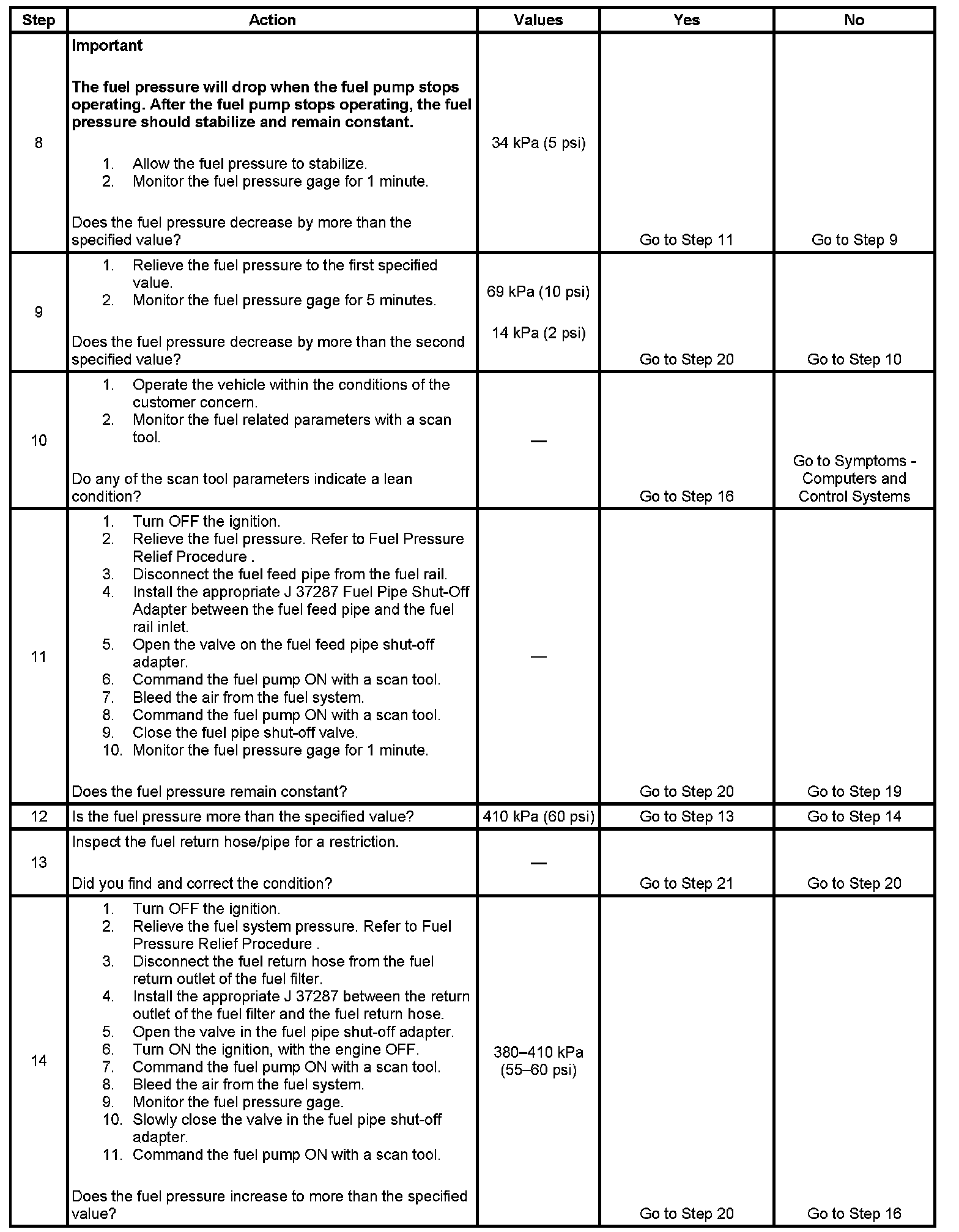 8. This step tests for an internal fuel leak. If the fuel pressure drops during this test, then an internal loss of pressure is indicated.