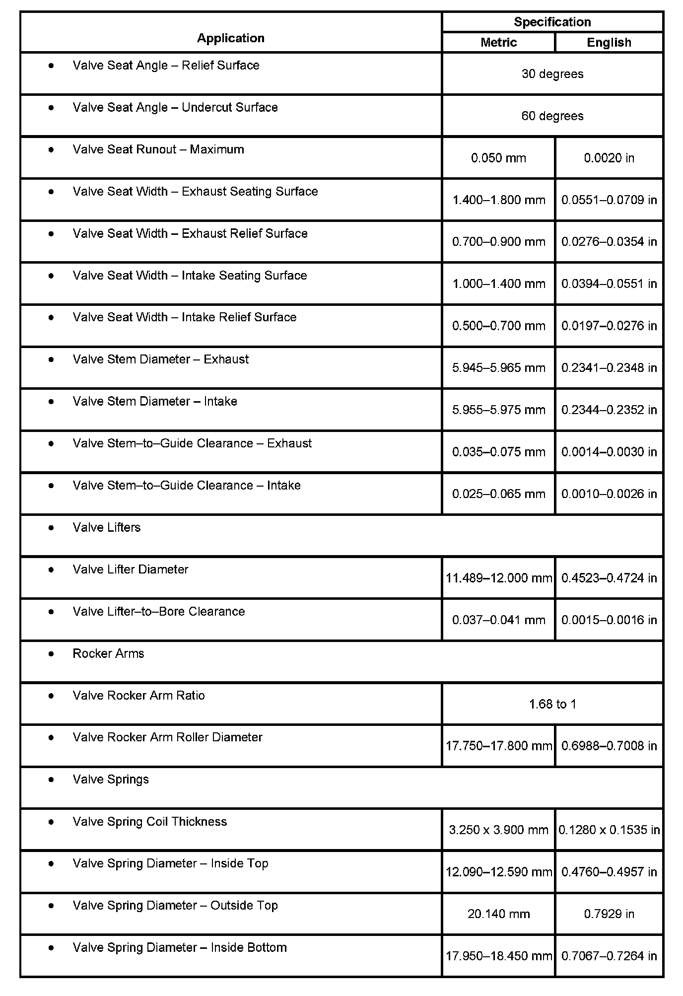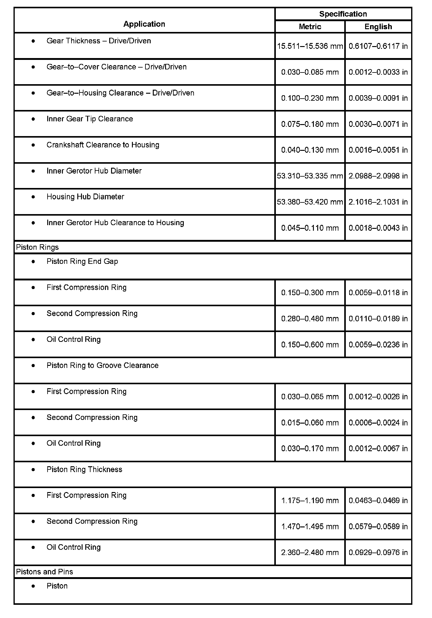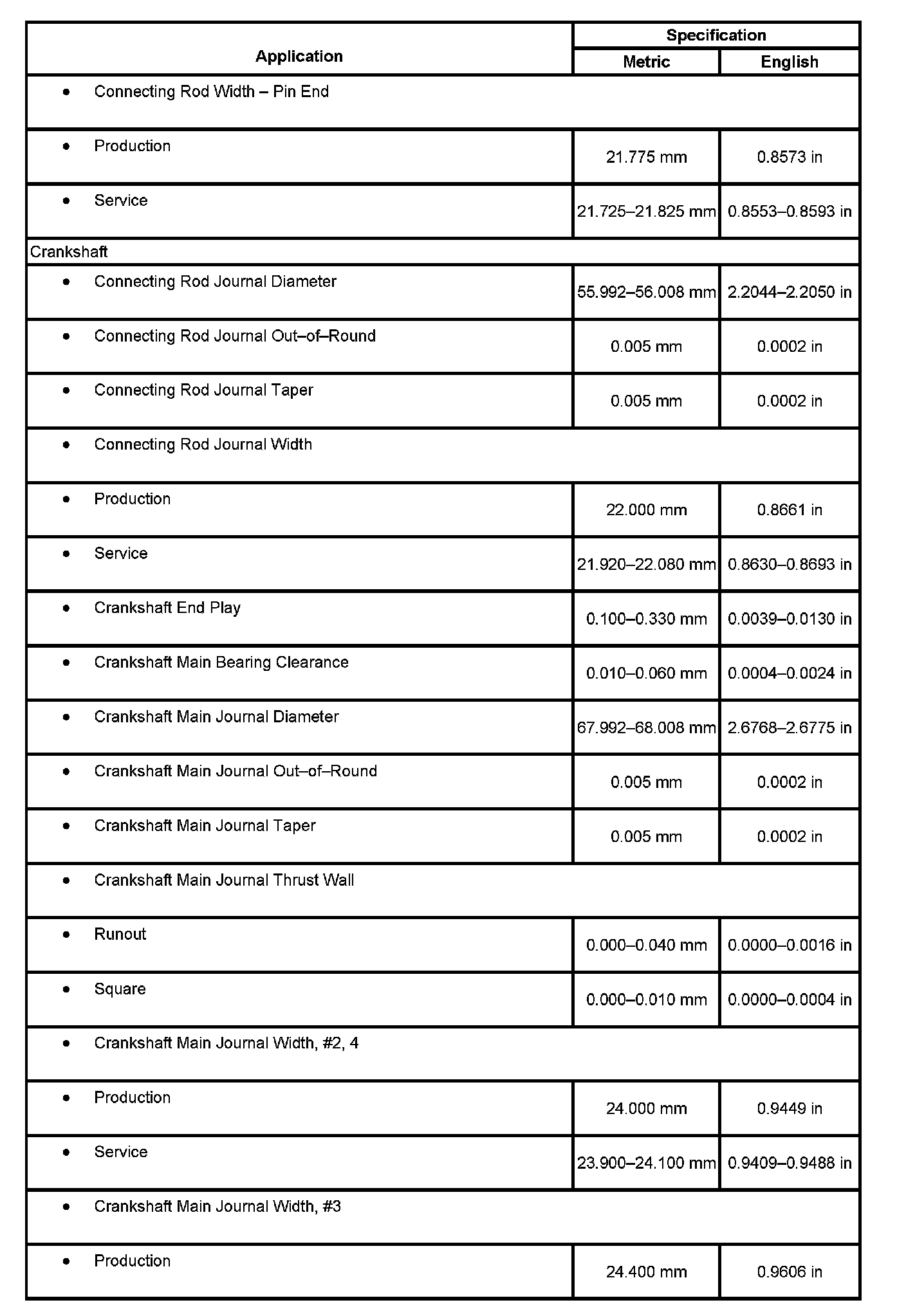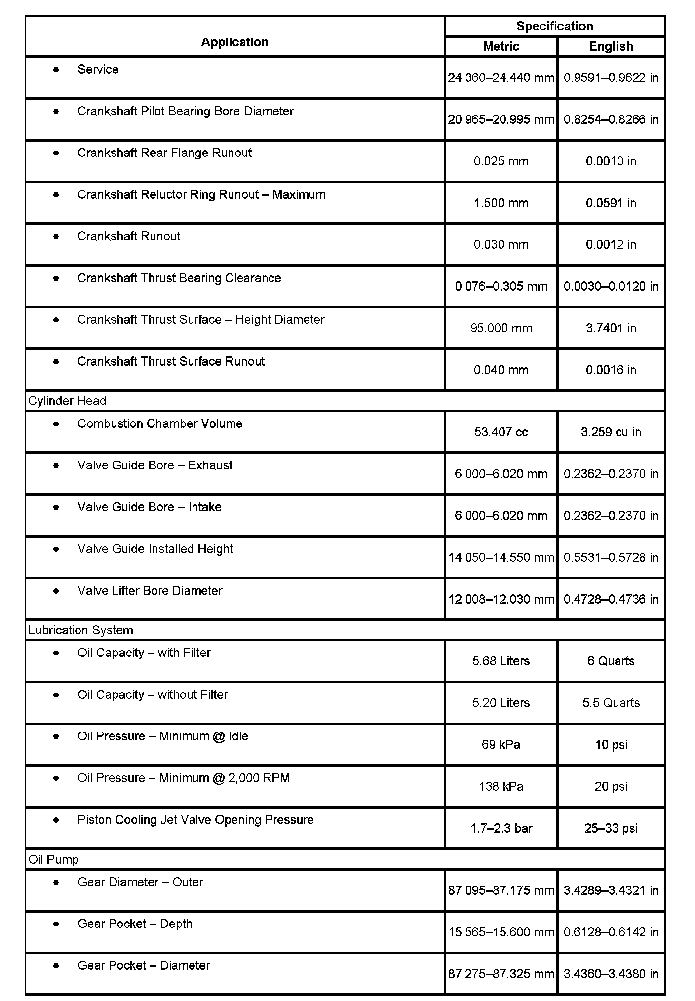 Engine Mechanical Specifications, Part 7: