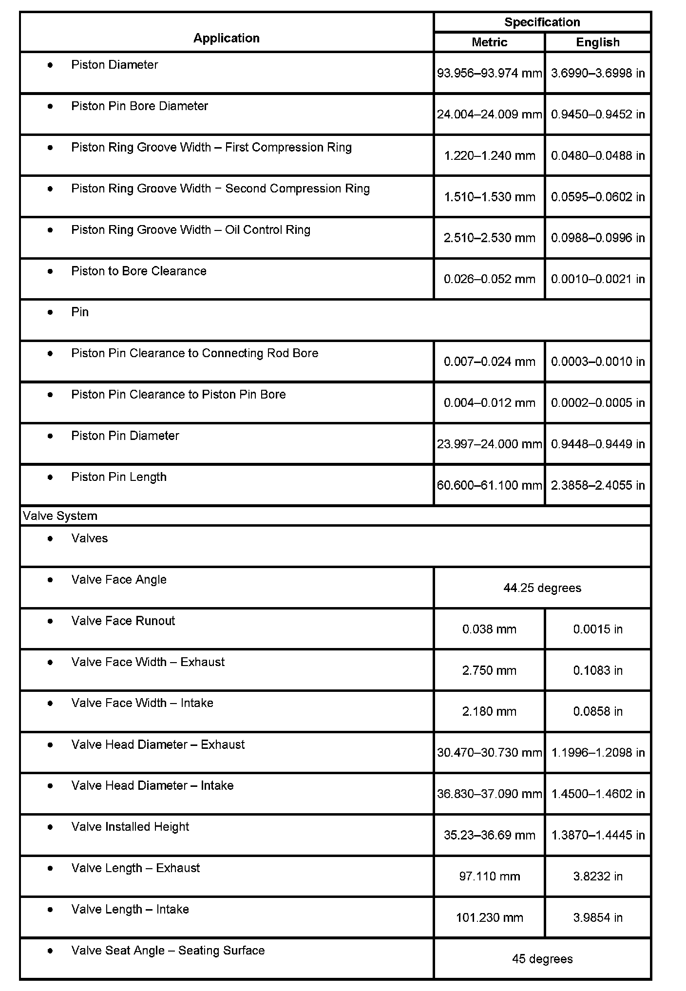 Engine Mechanical Specifications, Part 2: