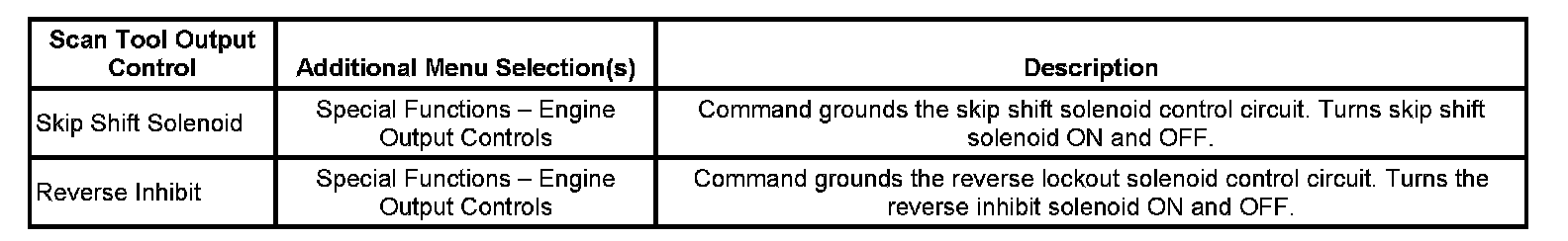 Scan Tool Output Controls - Tremec 6-Speed