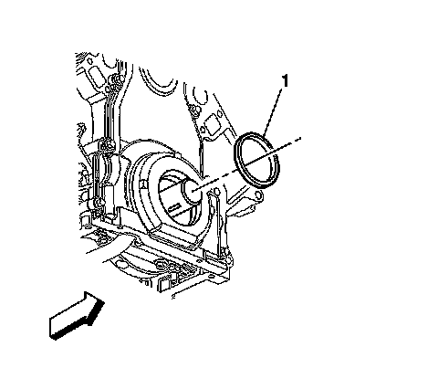 ^ Inspect the oil seal for proper installation. The oil seal should be installed evenly and completely into the front cover bore.