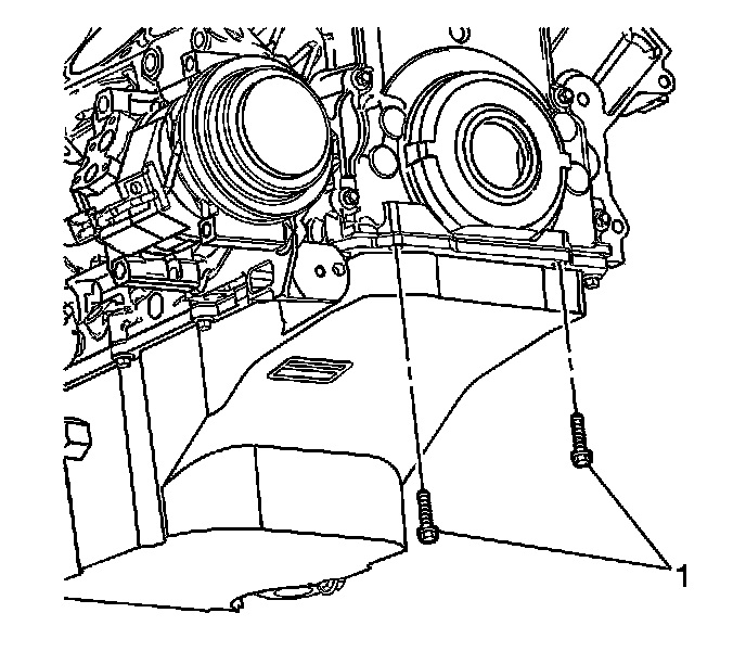 4. Install the oil pan-to-front cover bolts (1) until snug. Do not overtighten.