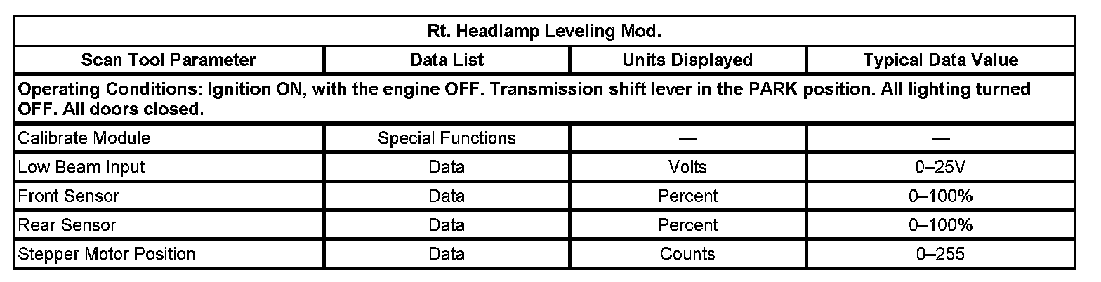 Scan Tool Data List - Rt. Headlamp Leveling Mod.