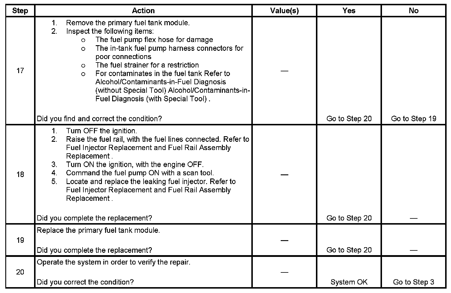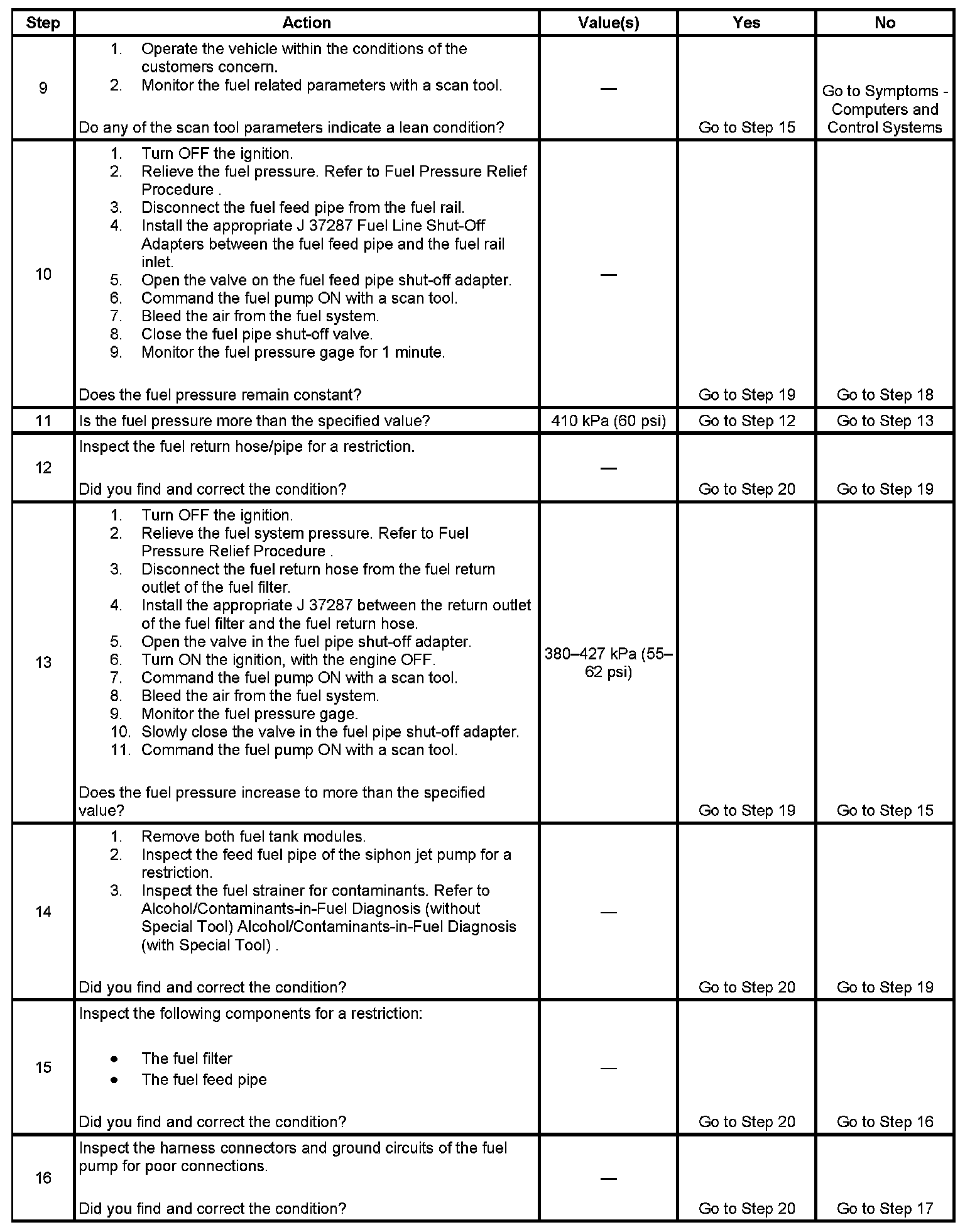 16. This step verifies that a circuit condition is not the cause of a fuel pressure concern. Inspect all fuel pump electrical circuits thoroughly.