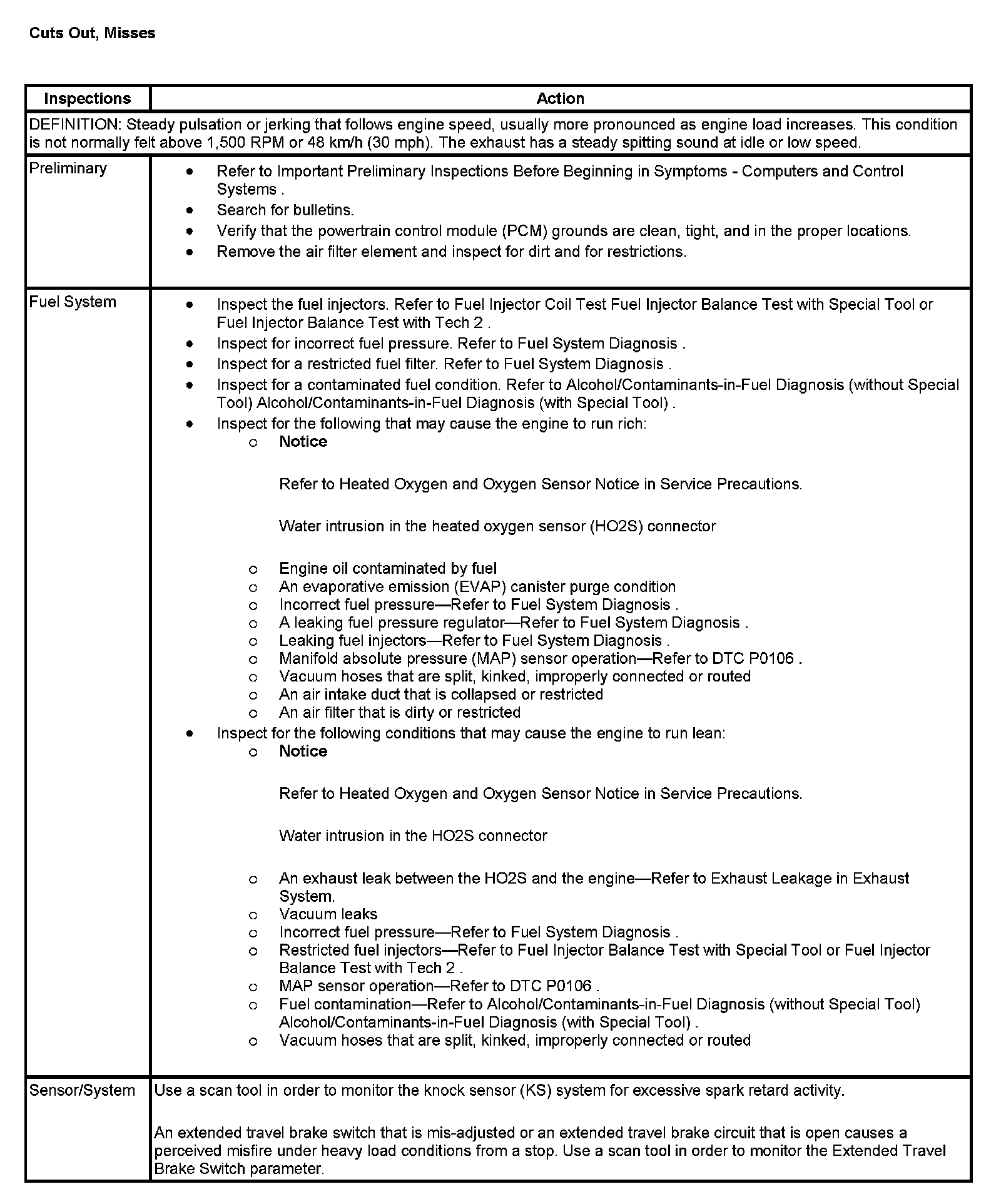 Cuts Out, Misses