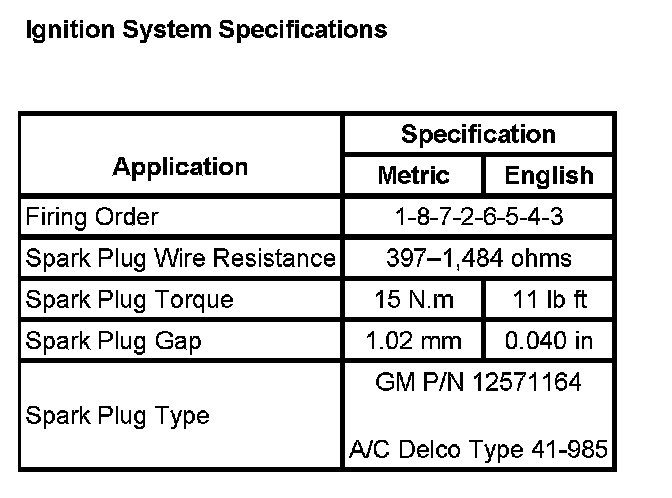 Ignition System: Specifications