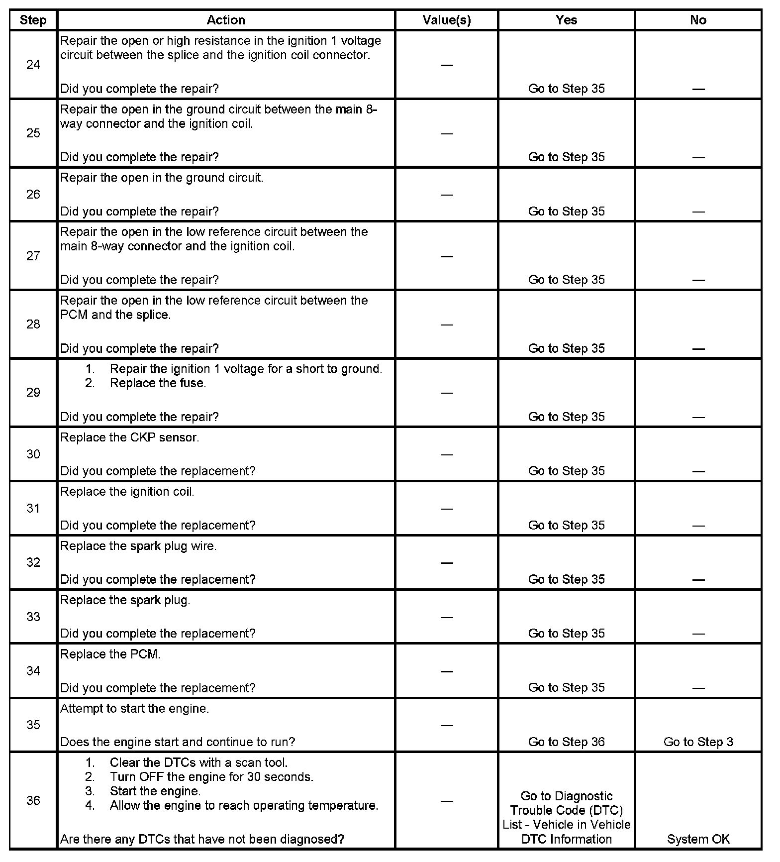 12. A good indication that the fuse is open is all of the misfire current counters are incrementing on one side of the engine. Inspect the ignition positive voltage circuit for a grounded circuit. If the fuse is open and the ignition coil circuits are OK, inspect the injector circuits for being grounded.