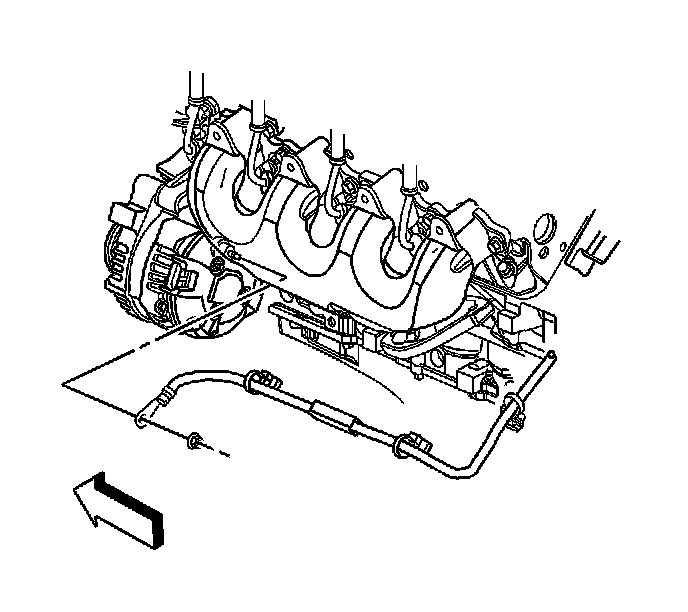 11. Remove the positive battery cable from the retaining features on the engine block.