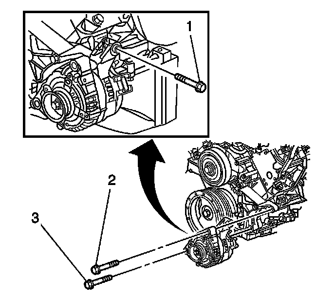 6. Install the front generator mounting bolts (2,3), but do not tighten at this time.