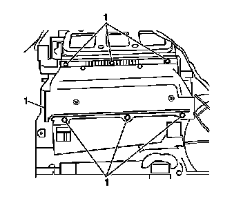 4. Remove the heater core cover screws (1).