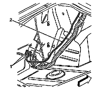 2. Carefully pull the antenna cable (2) past the rear shelf into the passenger compartment.