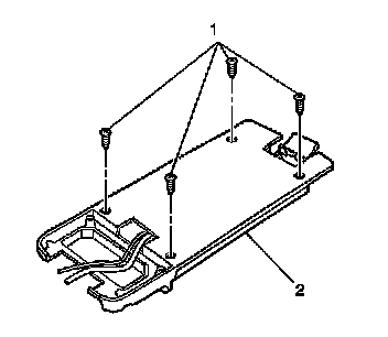 11. Remove the console tray insert screws (1) from the console tray (2).