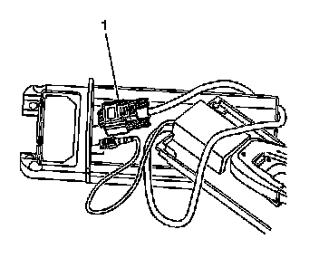 7. Route the cellular phone wiring (1) in the hinge area of the console tray.