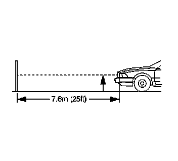 The area shall consist of a level surface large enough to allow for a vehicle and an additional 7.62 m (25 ft) as measured from the face of the headlamps to the aiming screen.