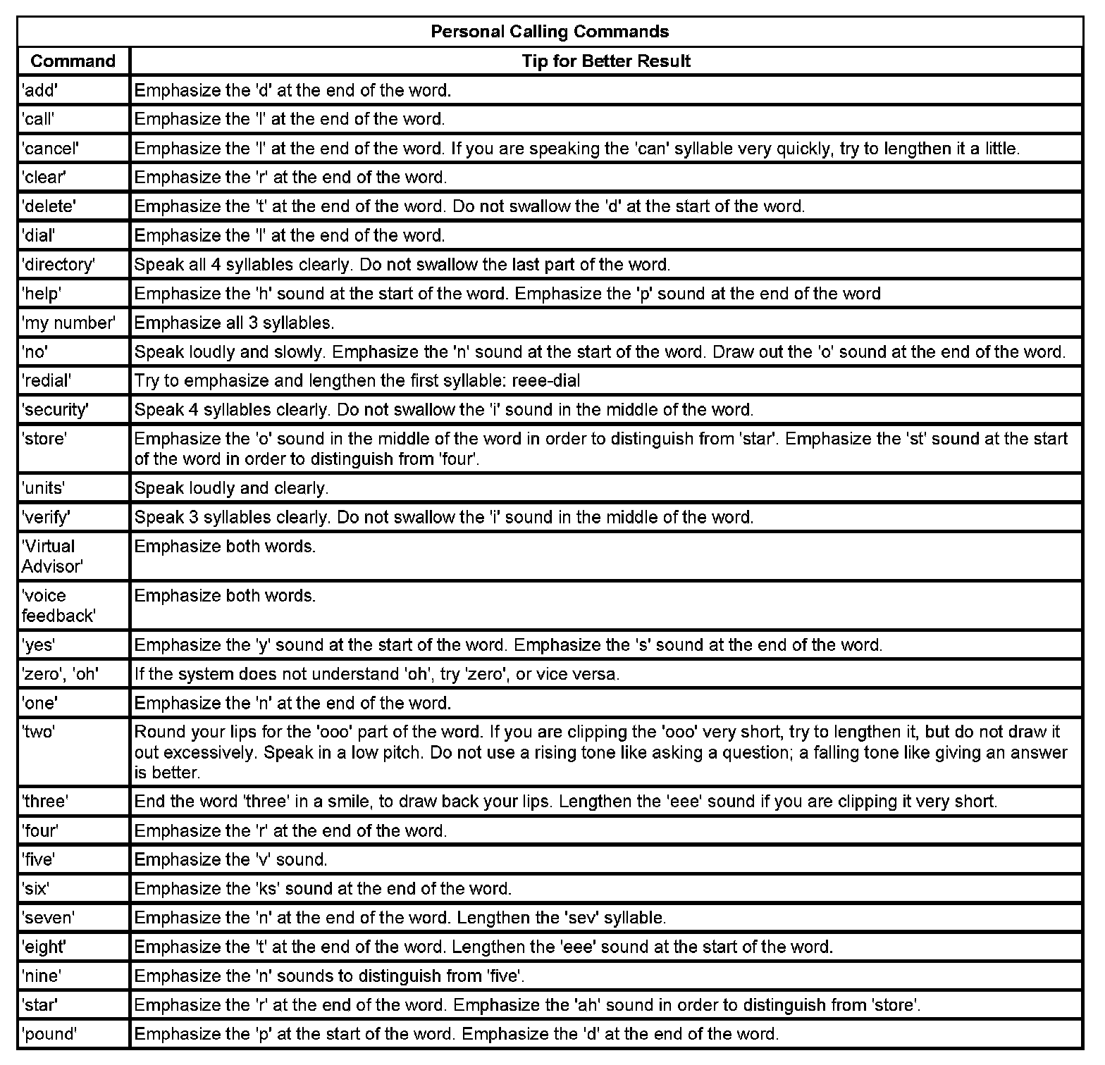 The OnStar(R) speech recognition systems use speech technology that is designed to understand a wide range of American English speakers. Although there is no one right way to speak English, the system will work best when users try to modify their pronunciation should they encounter difficulty. Users who do not obtain good results are advised to try the tips and workarounds found.