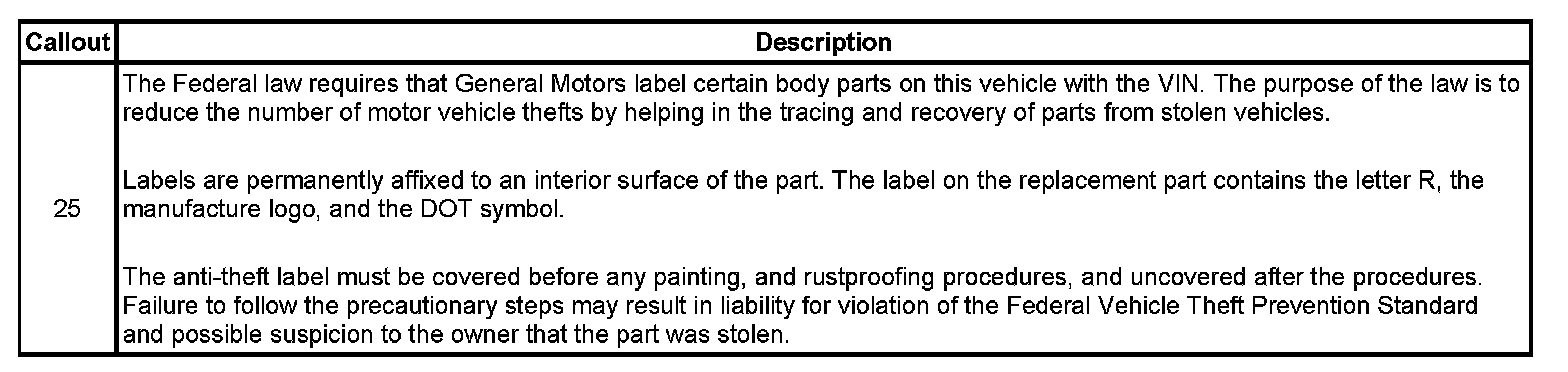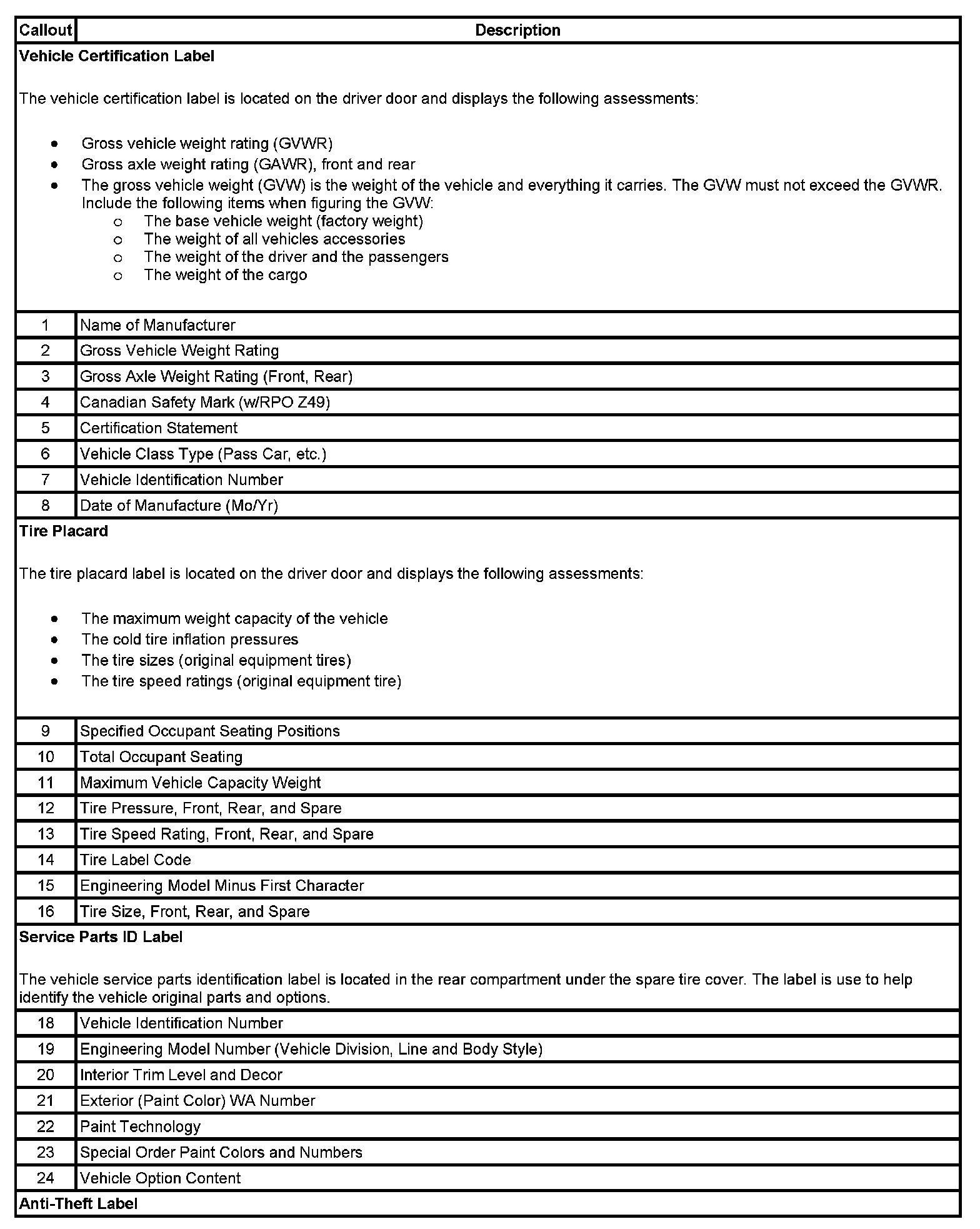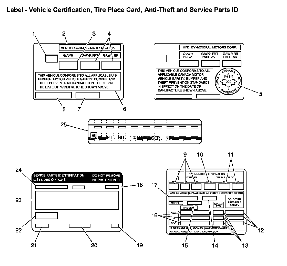 Label - Vehicle Certification, Tire Place Card, Anti - Theft And Service Parts ID: