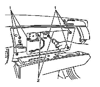 1. Remove the passenger knee bolster. Refer to Knee Bolster Replacement - Right (Knee Bolster Replacement - Right)