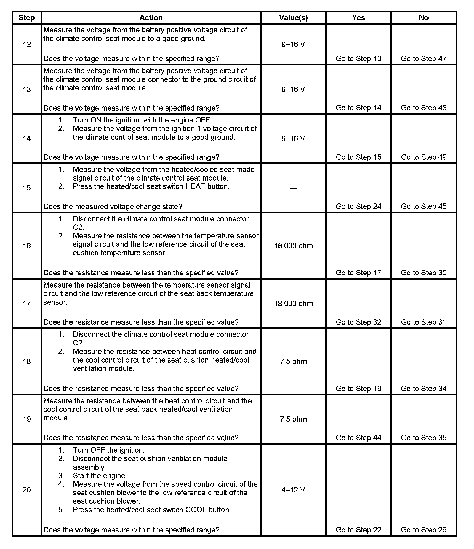 - The ignition must be cycled OFF then ON between each test in order to reset the climate control seat module (CCSM).