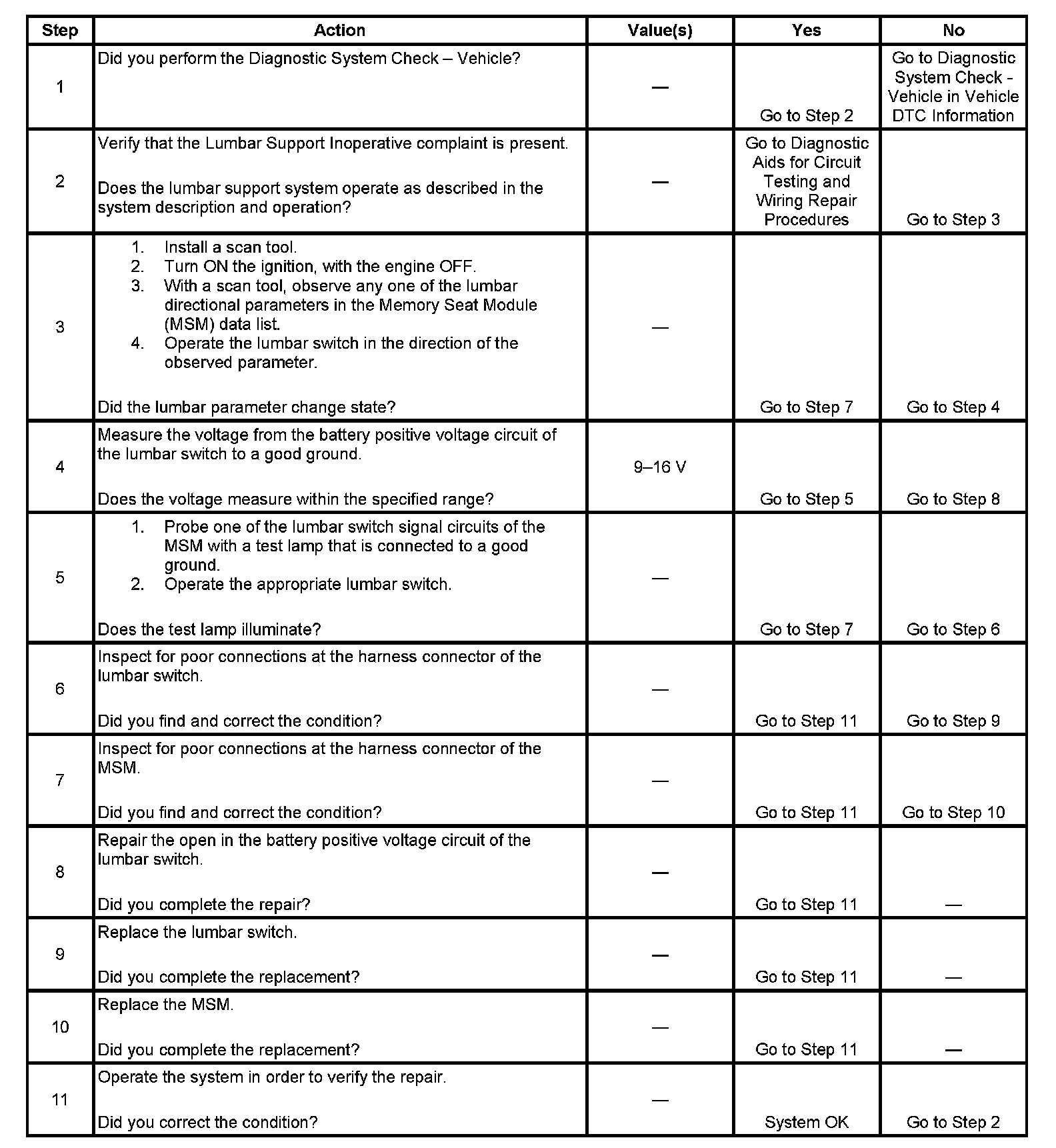 Lumbar Support Inoperative (With Memory - RPO A45)