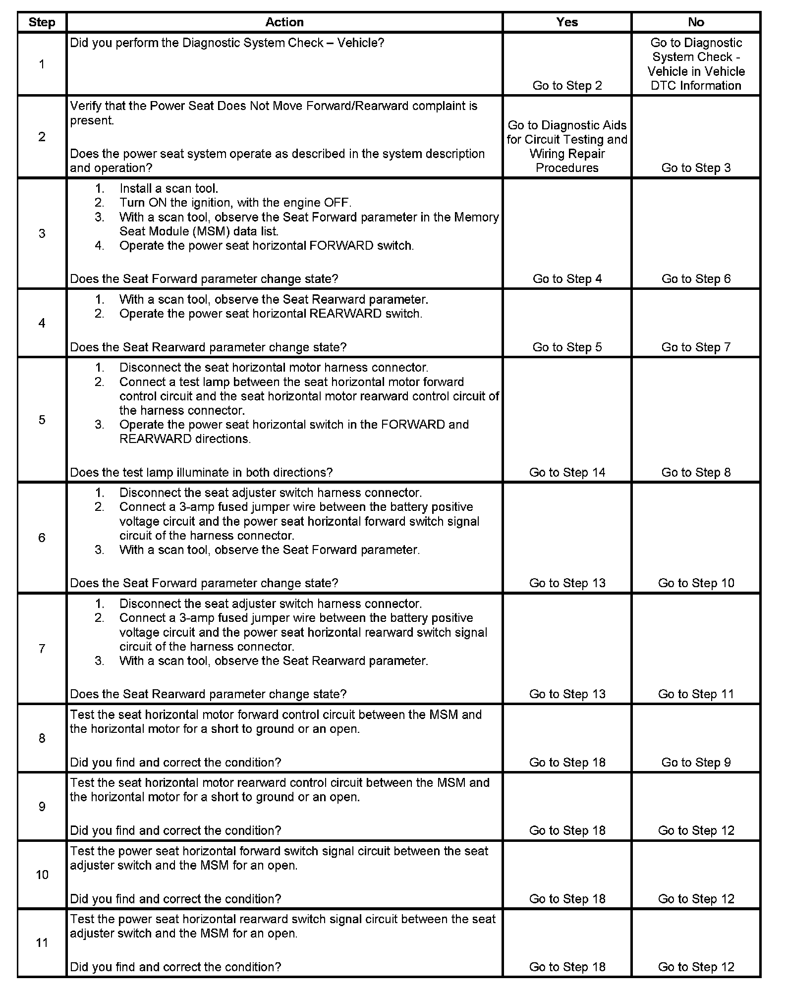 Power Seat Does Not Move Forward/Rearward (With Memory - RPO A45)