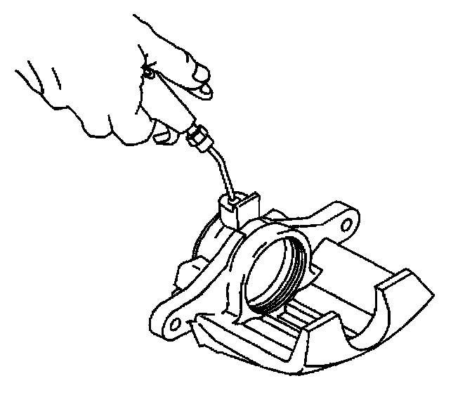 4. Remove the brake caliper piston from the caliper bore by directing low pressure compressed air into the caliper bore through the fluid inlet hole.