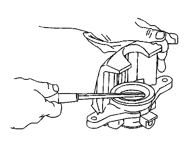 6. Using a small wooden or plastic tool, remove the piston seal from the caliper bore and discard the piston seal.