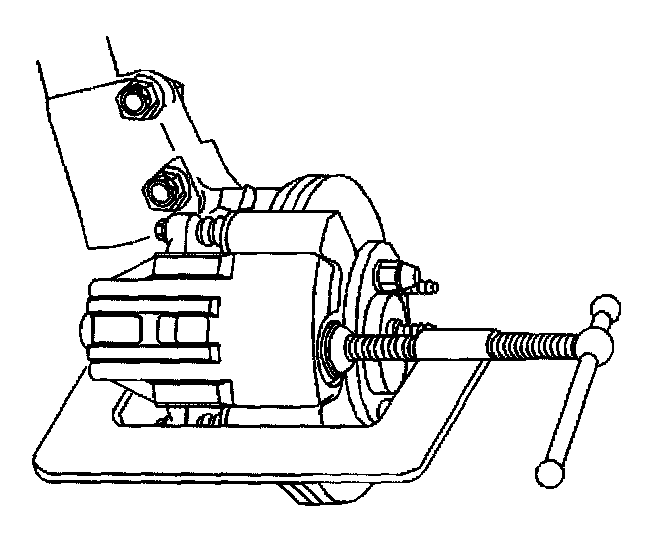 8. Compress the brake caliper piston into brake caliper bore to allow the piston enough clearance to slide the brake caliper off the brake rotor.