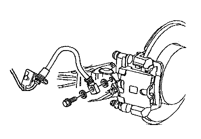 9. Remove brake hose to caliper bolt attaching the brake hose to the brake caliper.