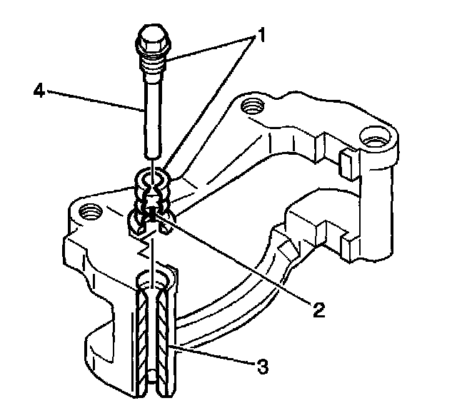 4. Install the brake pad retainers (1) to the caliper bracket.
