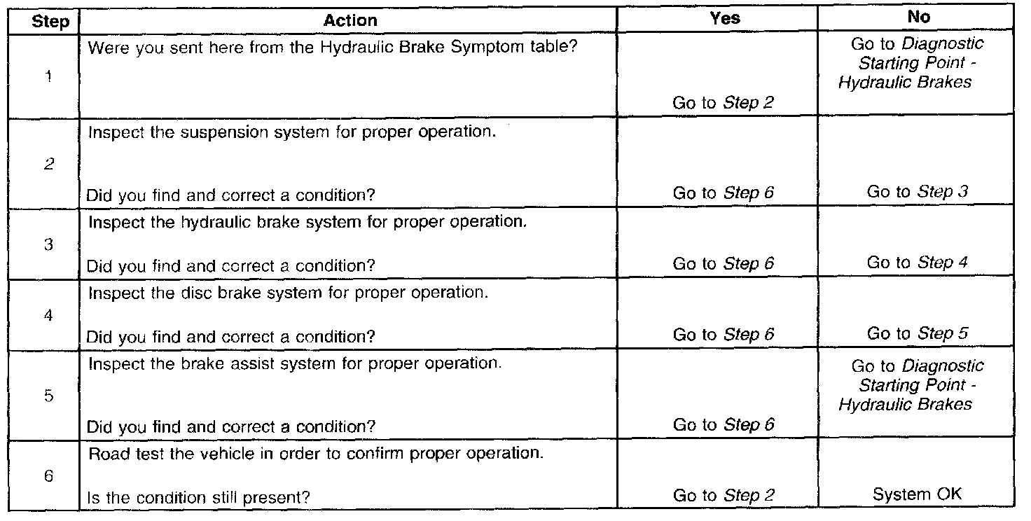 2. Suspension components that are not operating properly may cause a disturbance to the vehicle during application of the brake system.