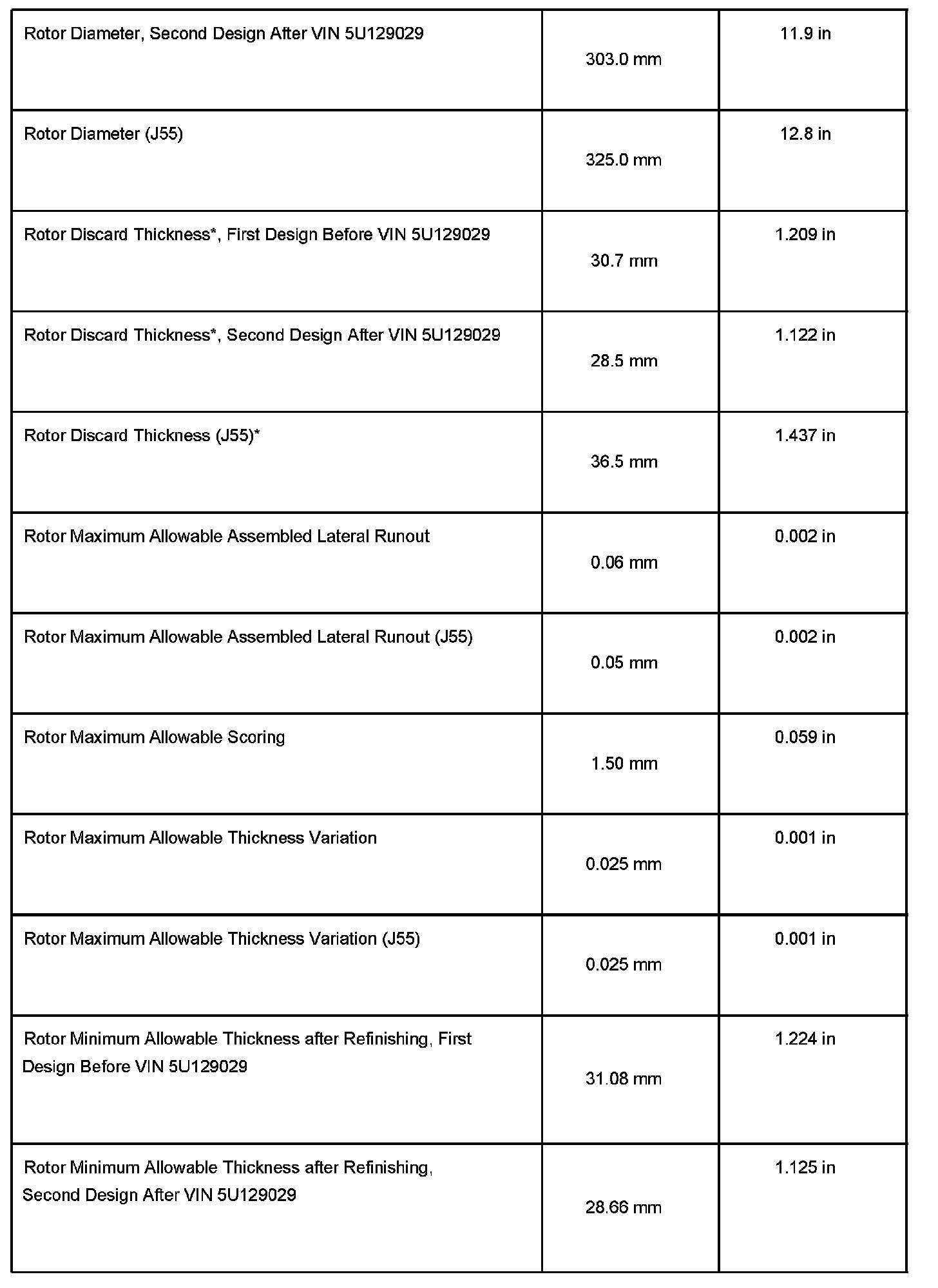 A running change was made in the 2005 model year to the front brake rotors and pads. The rotor specifications are different between the first design and second design rotors. The brake rotors and pads cannot be interchanged between the first and second designs.