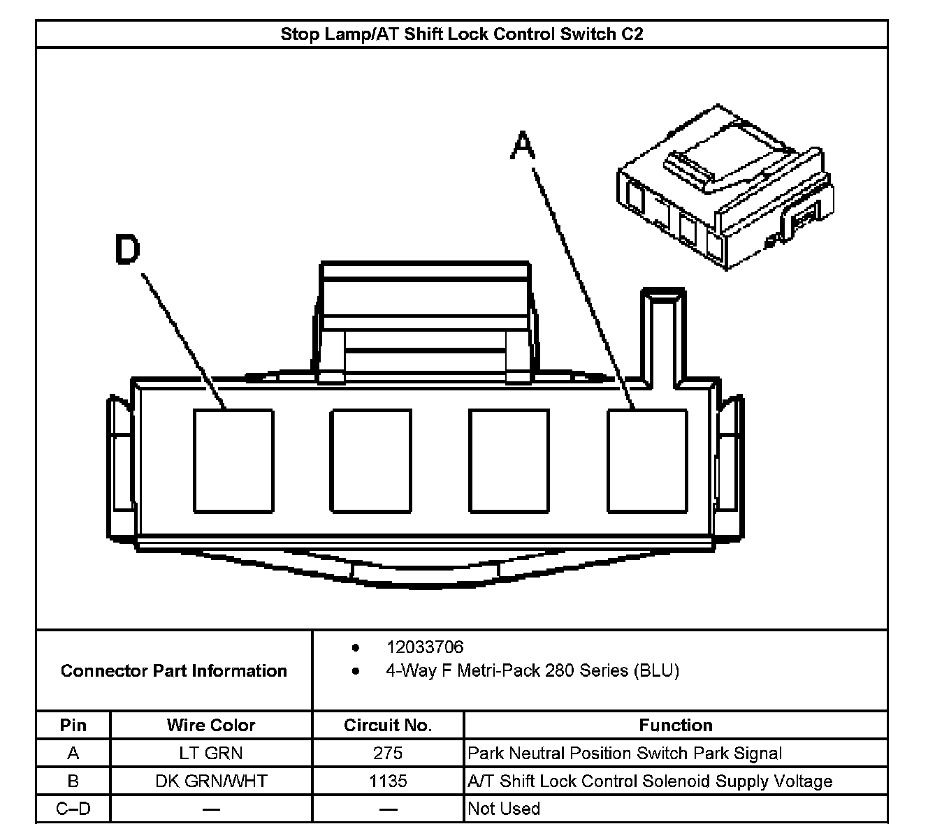 Stop Lamp/AT Shift Lock Control Switch C2:
