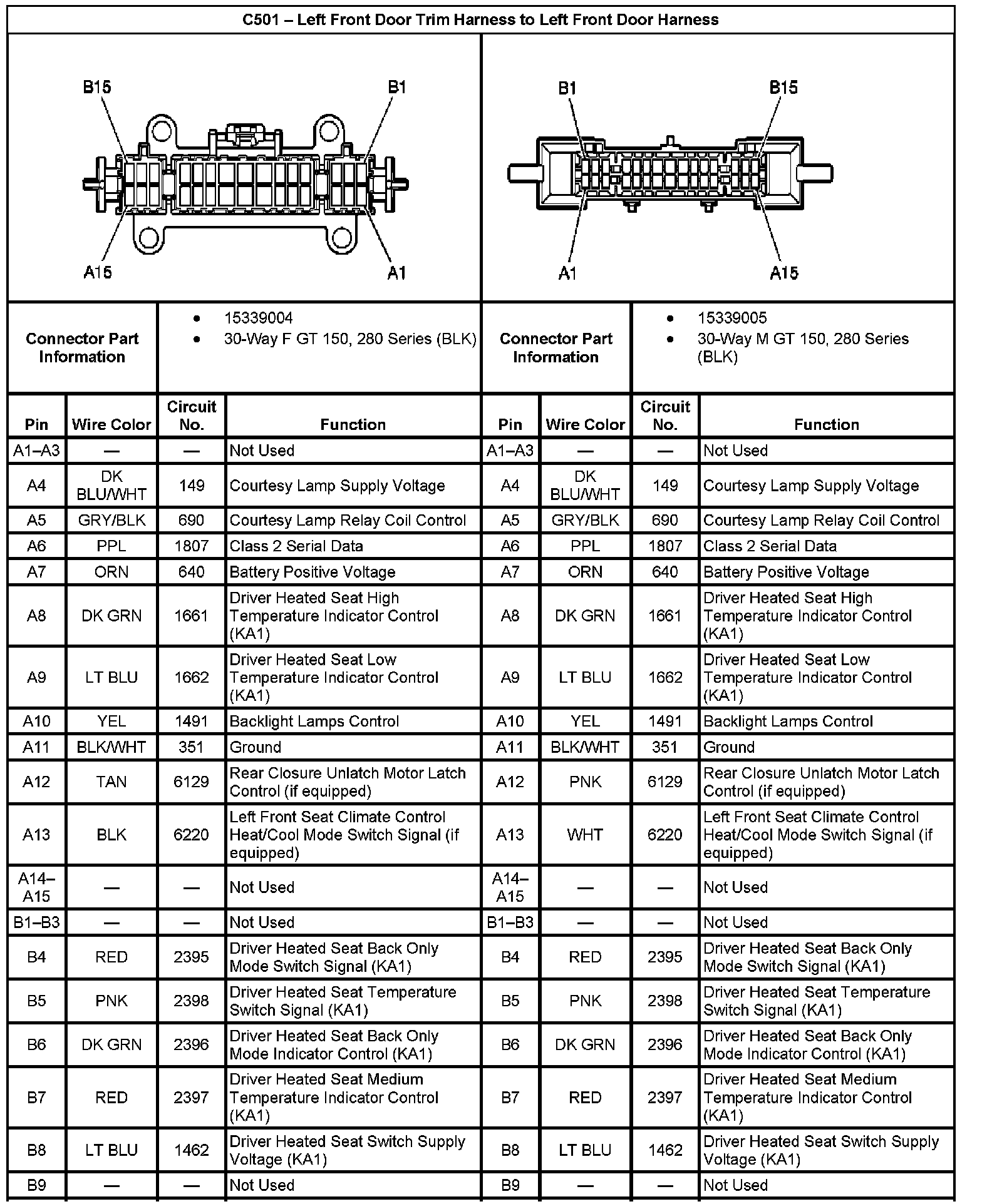 C501 - Left Front Door Trim Harness To Left Front Door Harness Part 1:
