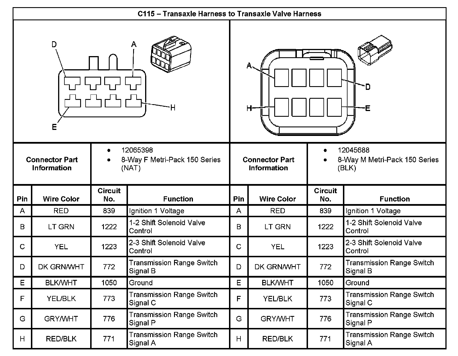 C115 - Transaxle Harness To Transaxle Valve Harness: