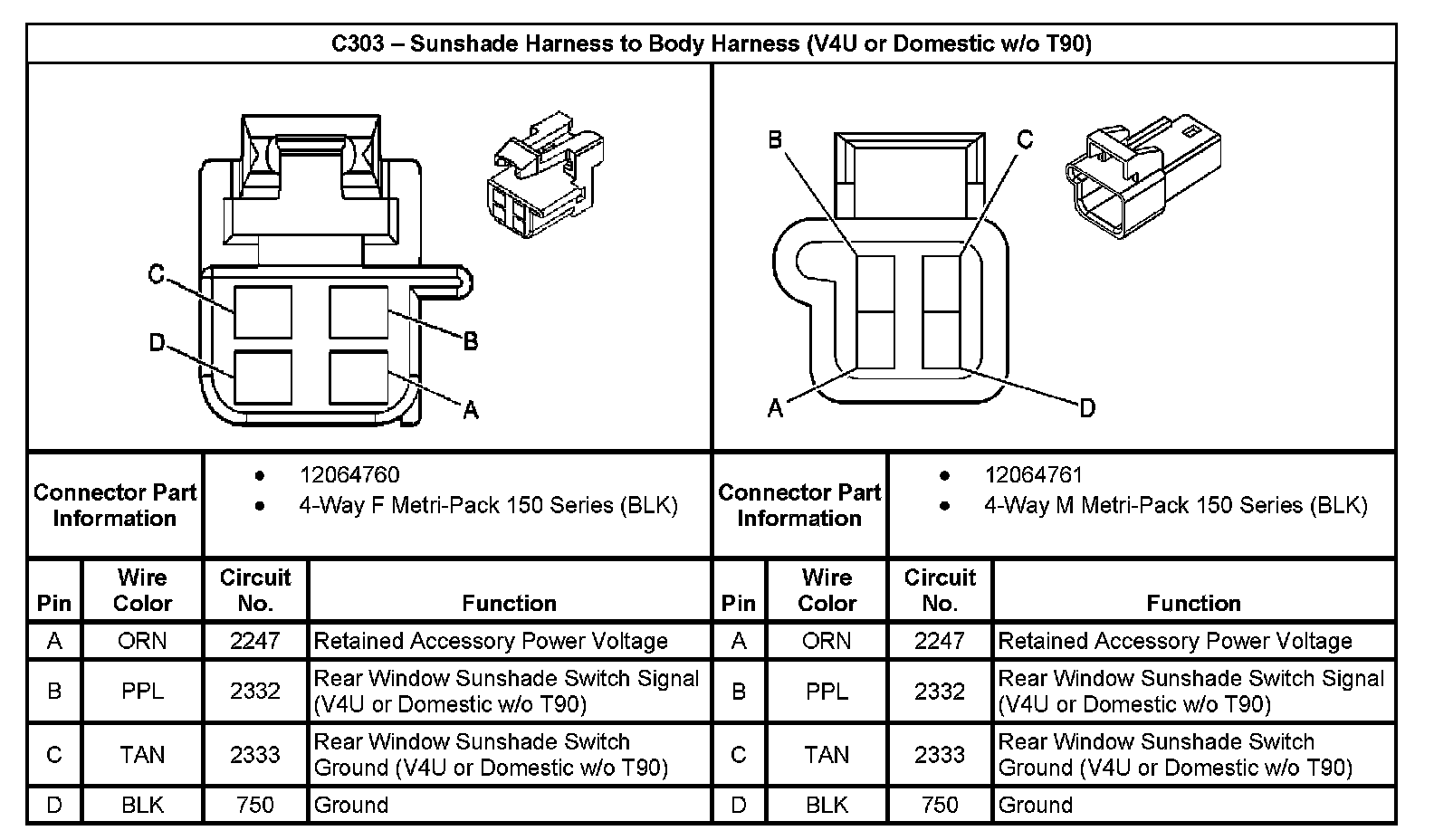 C303 - Sunshade Harness To Body Harness (With RPO Code V4U Or Domestic Without RPO Code T90):