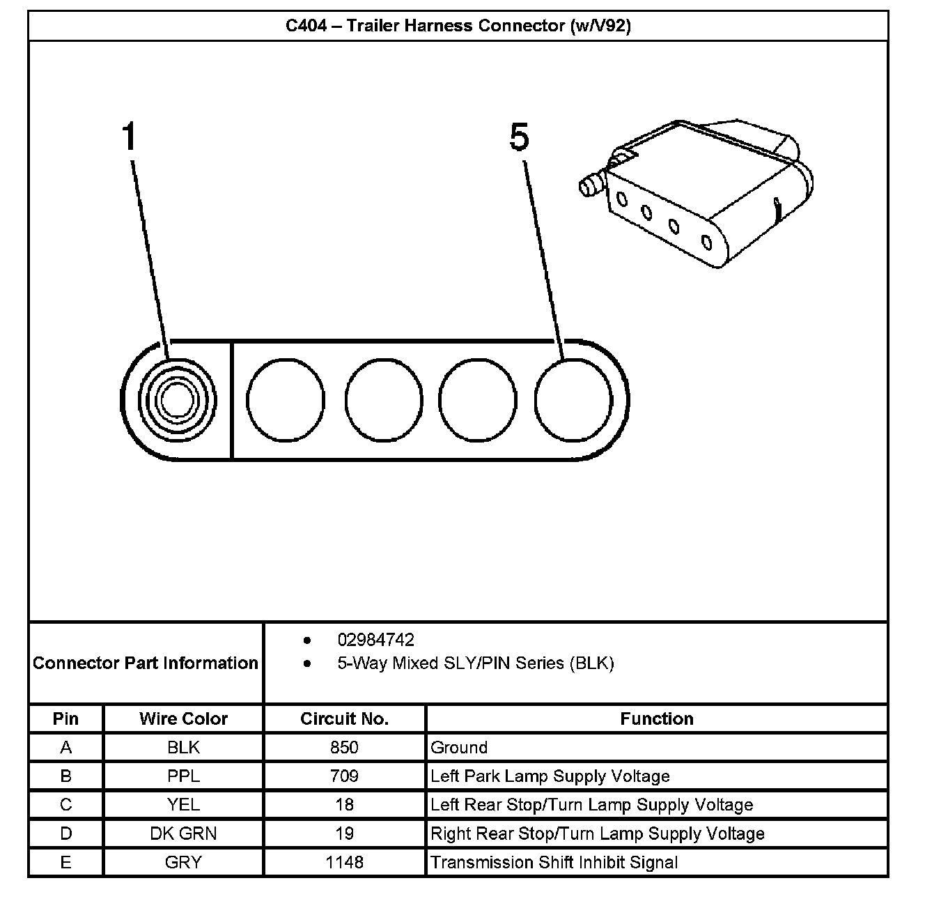 C404 - Trailer Harness Connector (With RPO Code V92):
