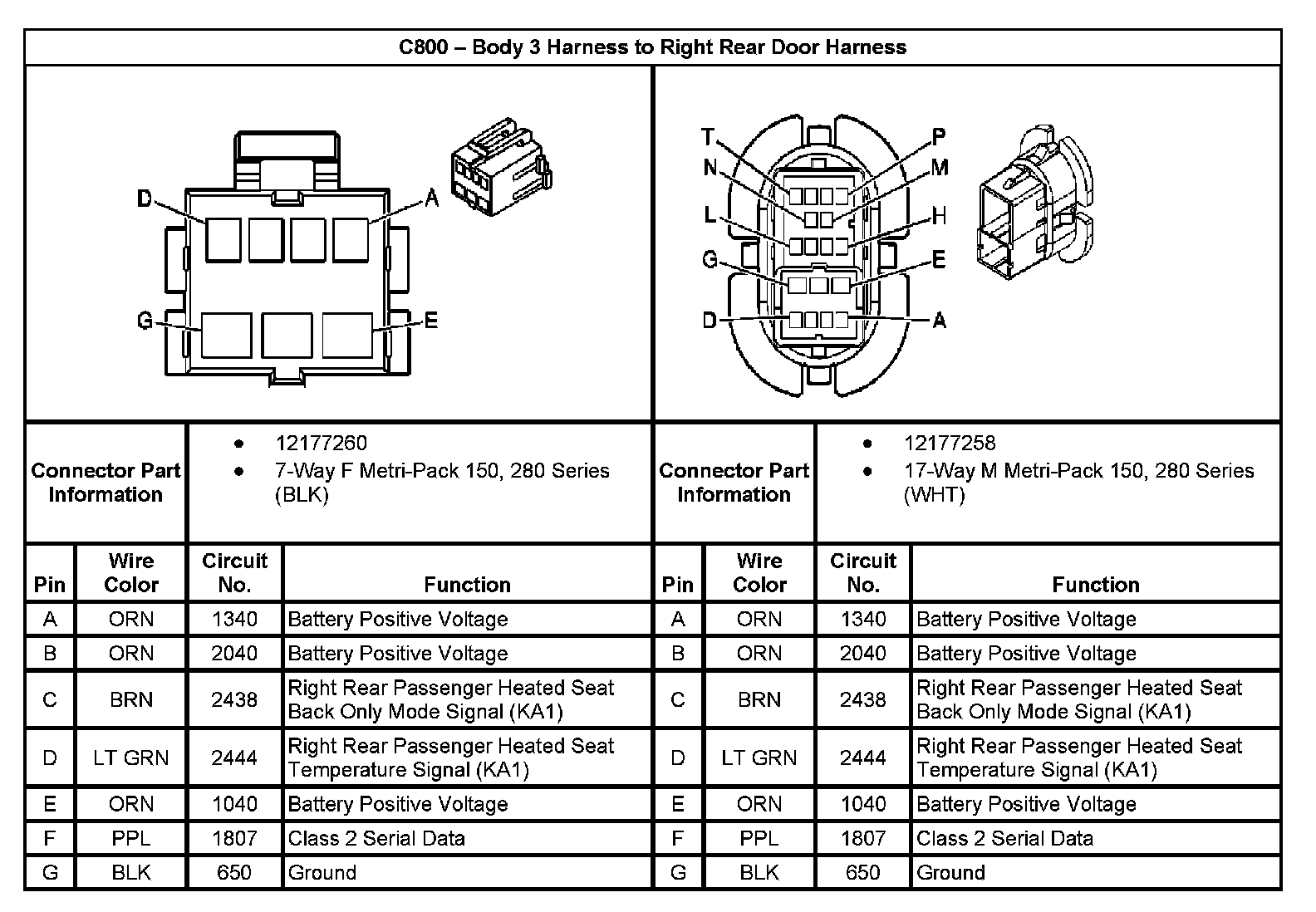 C800 - Body 3 Harness To Right Rear Door Harness: