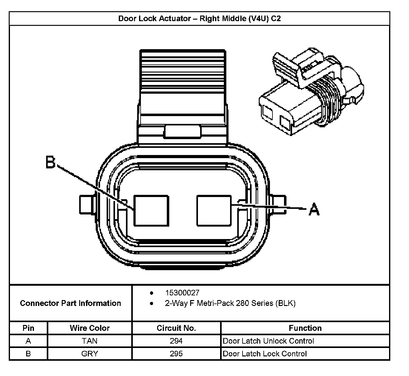 Door Lock Actuator - Right Middle (With RPO Code V4U) C2: