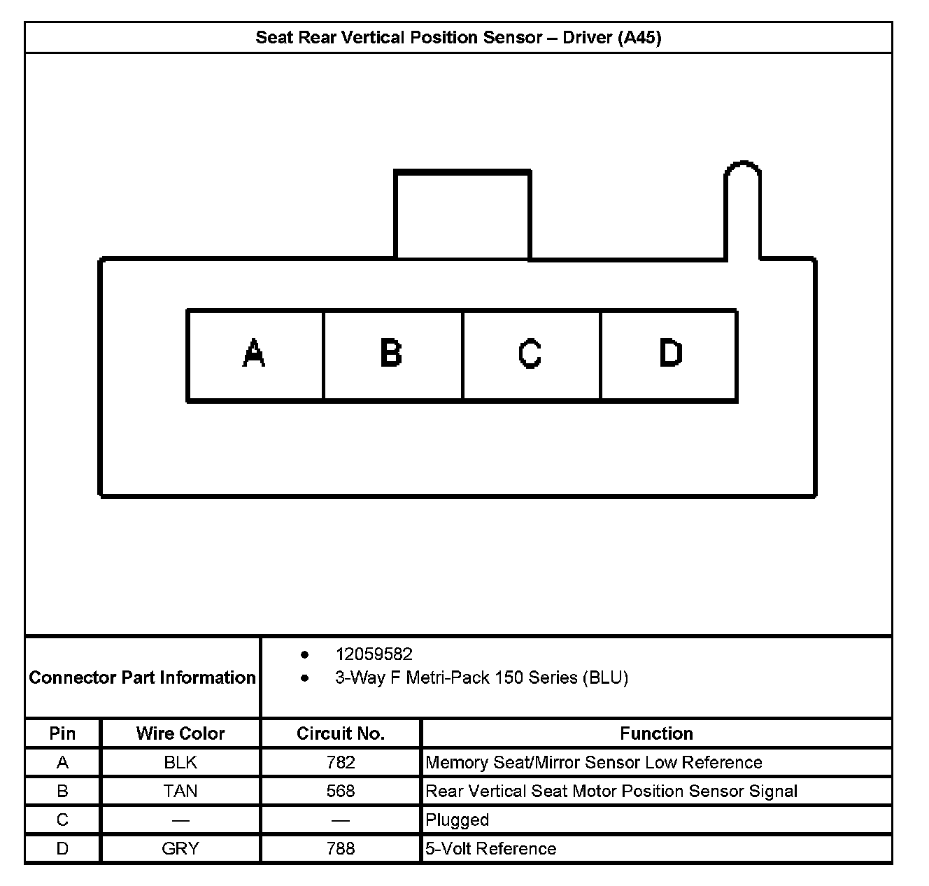 Seat Rear Vertical Position Sensor - Driver (With RPO Code A45):
