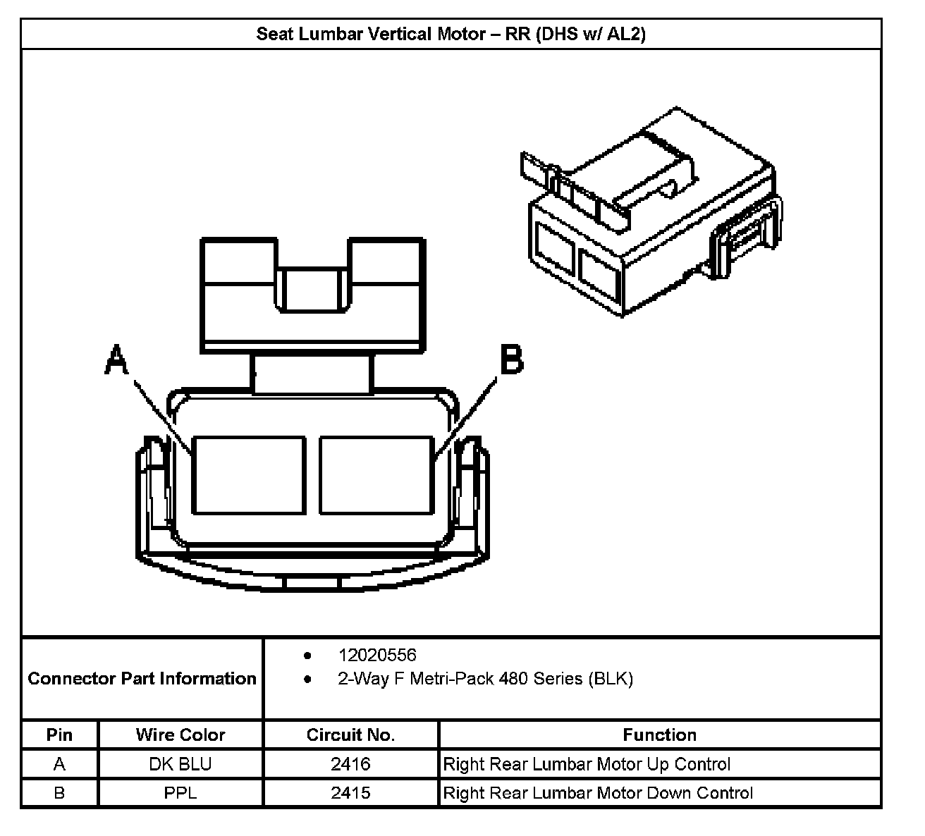 Seat Lumbar Vertical Motor - RR (DHS With RPO Code AL2):