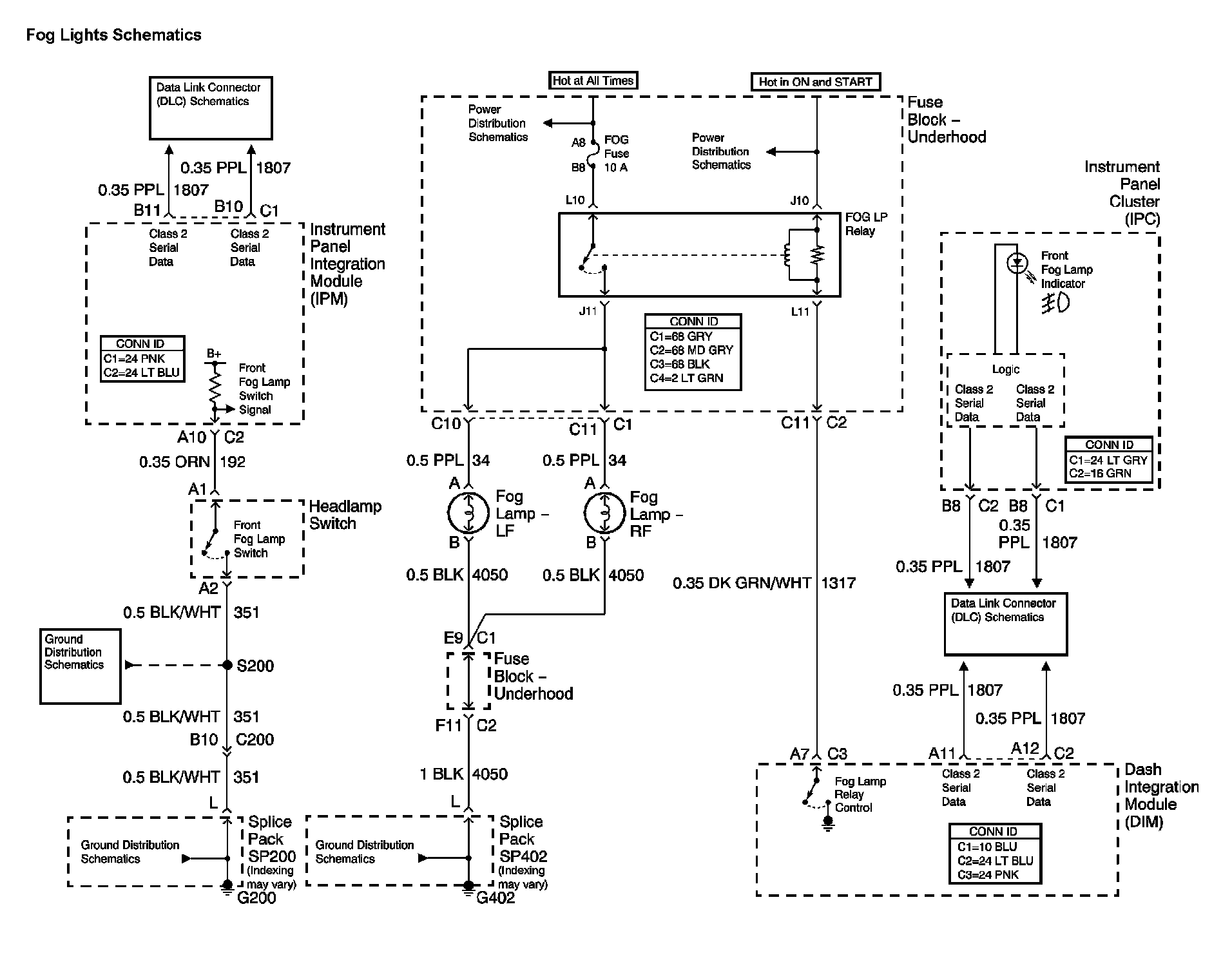 The locations for the Connectors, Grounds, Splices, and Grommets shown within these diagrams can be found via their numbers at Vehicle Locations.