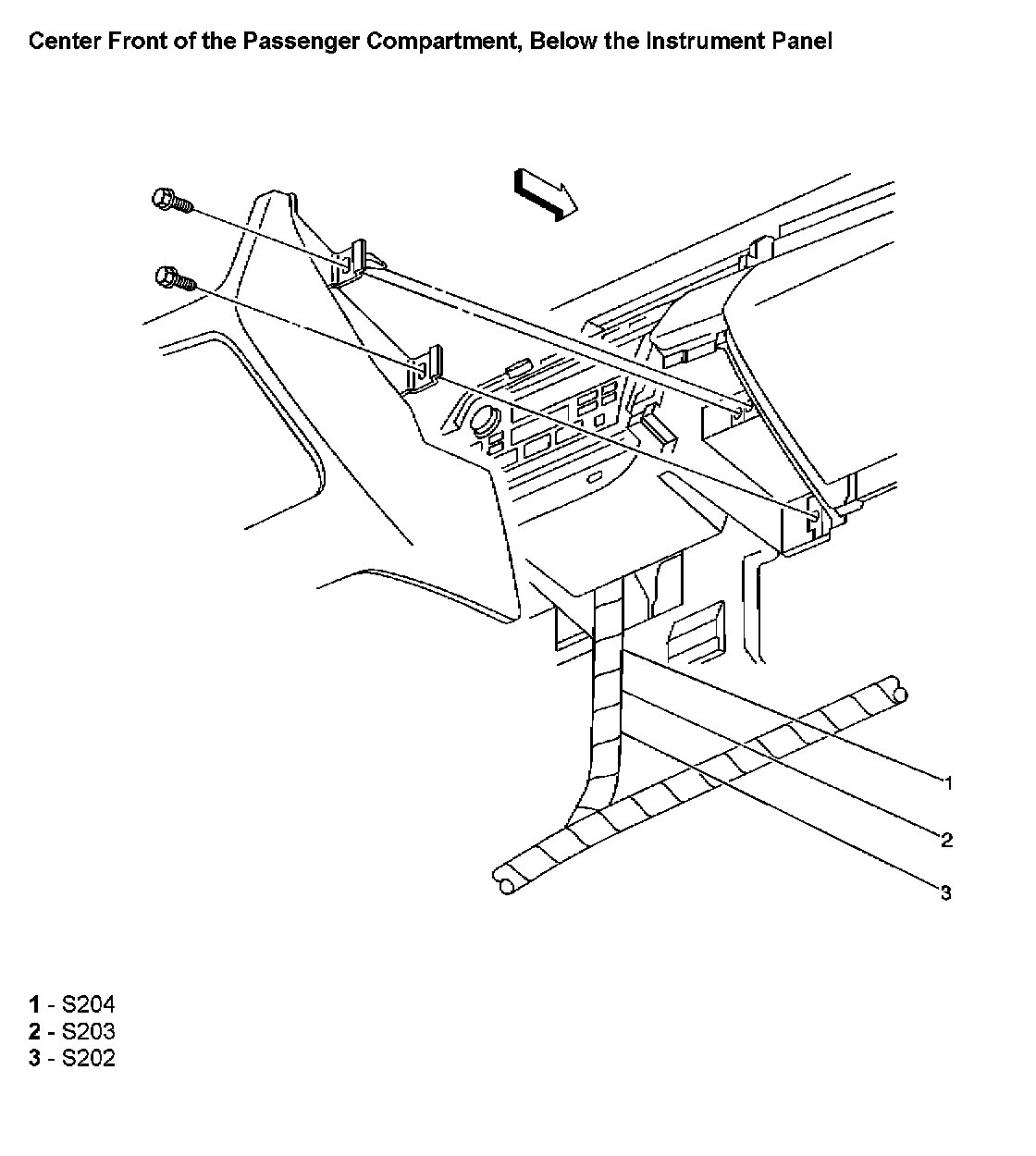 Center Front of the Passenger Compartment, Below the Instrument Panel