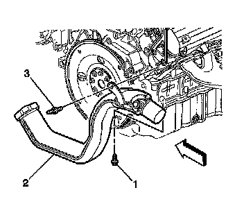 9. Install the intermediate pipe stud at the cylinder head (3) and the bolt at the lower crankcase (1).