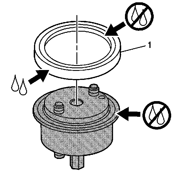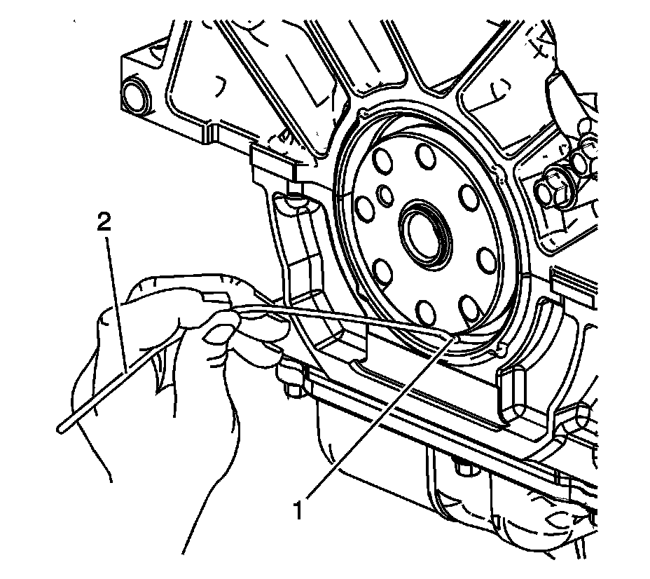 Lubricate the outer rubber surface (1) of the crankshaft rear oil seal with clean engine oil GM P/N 12345501 (Canadian P/N 992704) or equivalent.