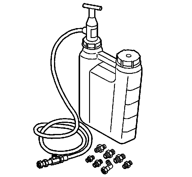 6. Pump the handle on the J 45299 in order to flow a minimum of 1 - 1.9 liters (1 - 2 quarts) of engine oil. Observe the flow of engine oil through the flexible hose and into the engine assembly.