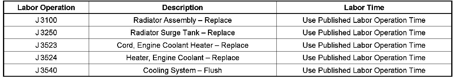^ If approved cooling systems flush and fill machine is not available, drain coolant and dispose of properly following the draining procedures in appropriate Service Manual. Refill the system using clear, drinkable water and run vehicle until thermostat opens. Repeat and run vehicle three (3) times to totally remove old coolant or until drained coolant is almost clear. Once the system is completely flushed, refill the cooling system to a 50%-60% concentration with a good quality ethylene glycol base engine coolant, P/N 12378560, 1 gal (in Canada, use P/N 88862159 1 L), conforming to GM specification 1825M, or recycled coolant conforming to GM specification 1825M, following the refill procedures in the appropriate Service Manual.
