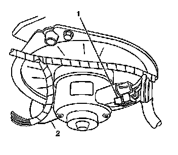 7. Disconnect the blower motor ventilation tube (2) from the module.